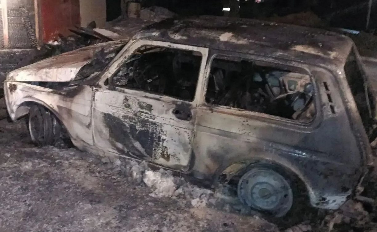 Пожарные прибыли на место в 22:59. К этому моменту открытым пламенем горел гараж на площади 28 квадратных метров. Внутри полыхал автомобиль и мотоцикл. Наблюдалось сильное задымление, возникла угроза возгорания соседних гаражей.