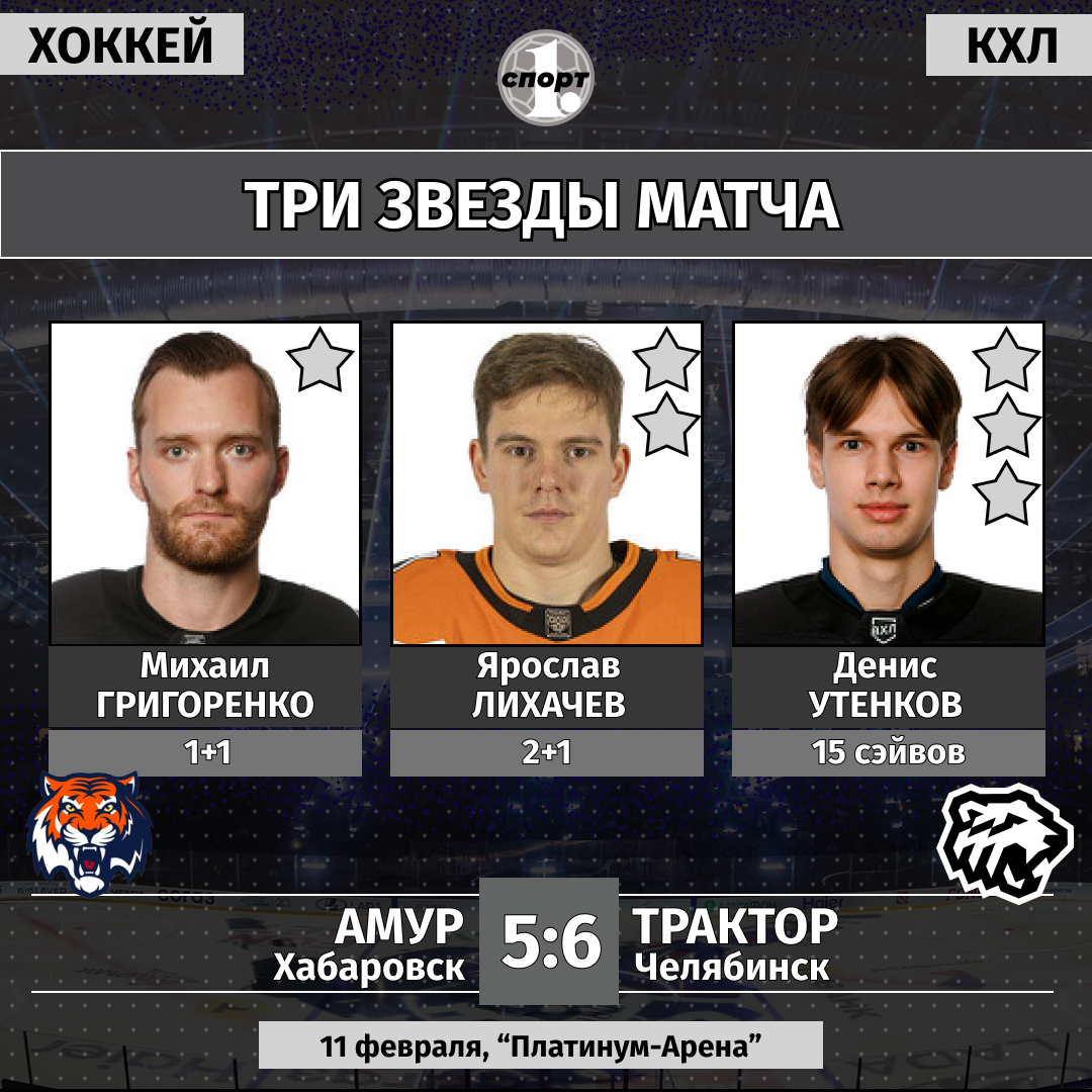 Хоккей. Сезон-2025/2026. Чемпионат КХЛ. 11 февраля. «Амур» (Хабаровск) — «Трактор» (Челябинск) — 5:6 (2:1, 2:3, 1:2).