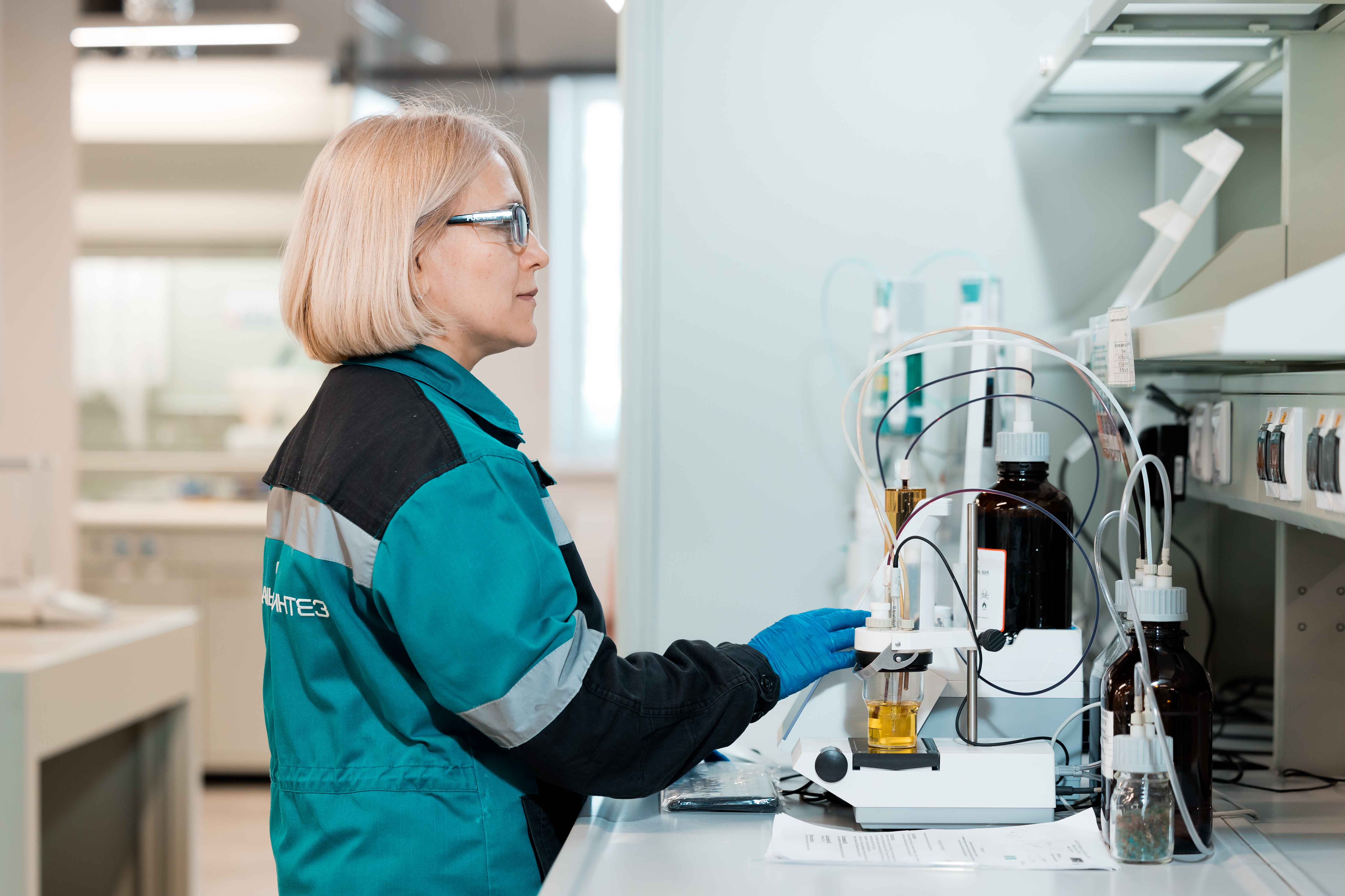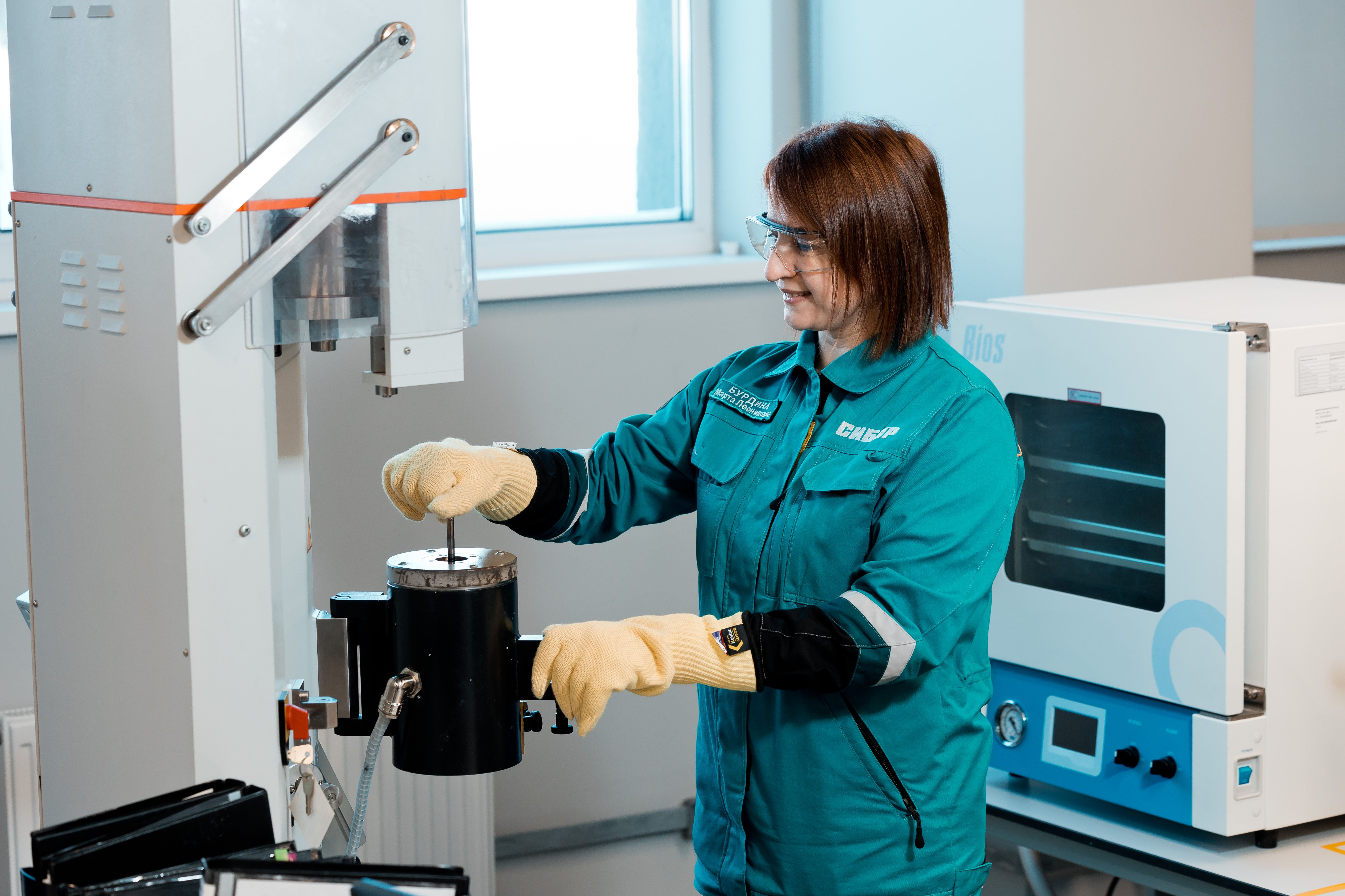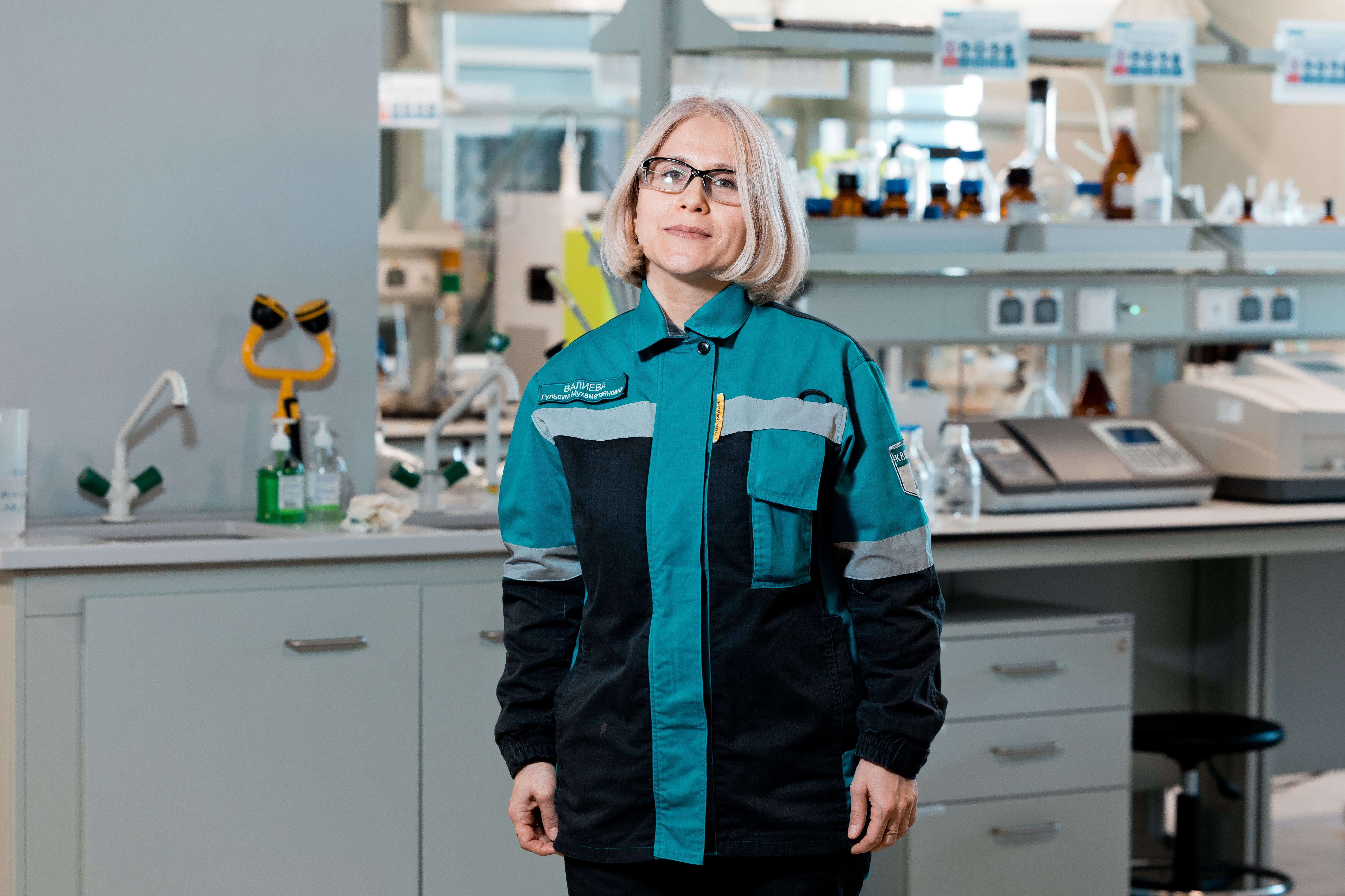 Гульсум Валиева — химик центральной заводской лаборатории (ЦЗЛ) «Казаньоргсинтеза». ЦЗЛ работает уже с практической, производственной реализацией идей: научная разработка, рождённая в СИБУР Инновациях, испытывается в составе готовых изделий в центрах прикладных разработок СИБУР Полилаб, и уже после этого новая технология попадает на завод. И тут на заводе центральная заводская лаборатория уже контролирует процессы с точки зрения качества. Лаборатория проводит аналитические исследования, тестирует технологические процессы и внедряет новые решения непосредственно на заводе.
