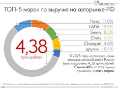 Распределение выручки на российском рынке новых легковых автомобилей в 2025-м. Инфографика: Автостат