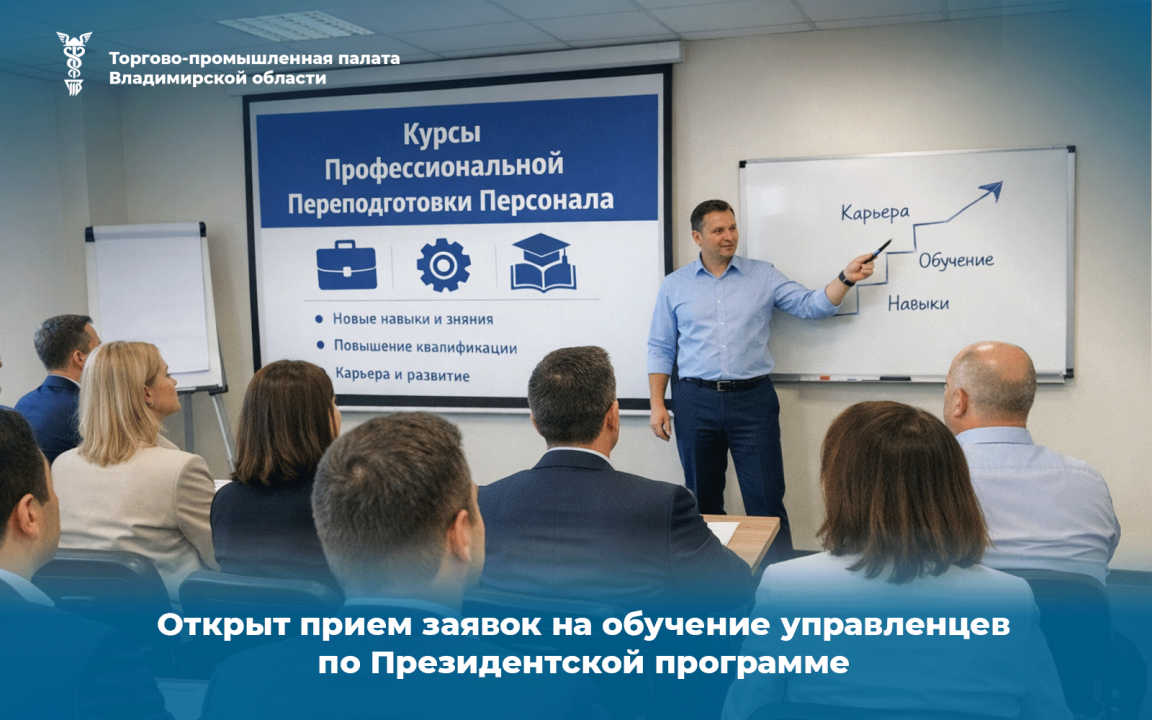 Во Владимирской области объявлен прием документов на обучение в рамках Государственного плана подготовки управленческих кадров для организаций народного хозяйства Российской Федерации. Набор осуществляется на 2026/2027 учебный год по программам профессиональной переподготовки в сфере экономики и управления (типы «А» и «В»).