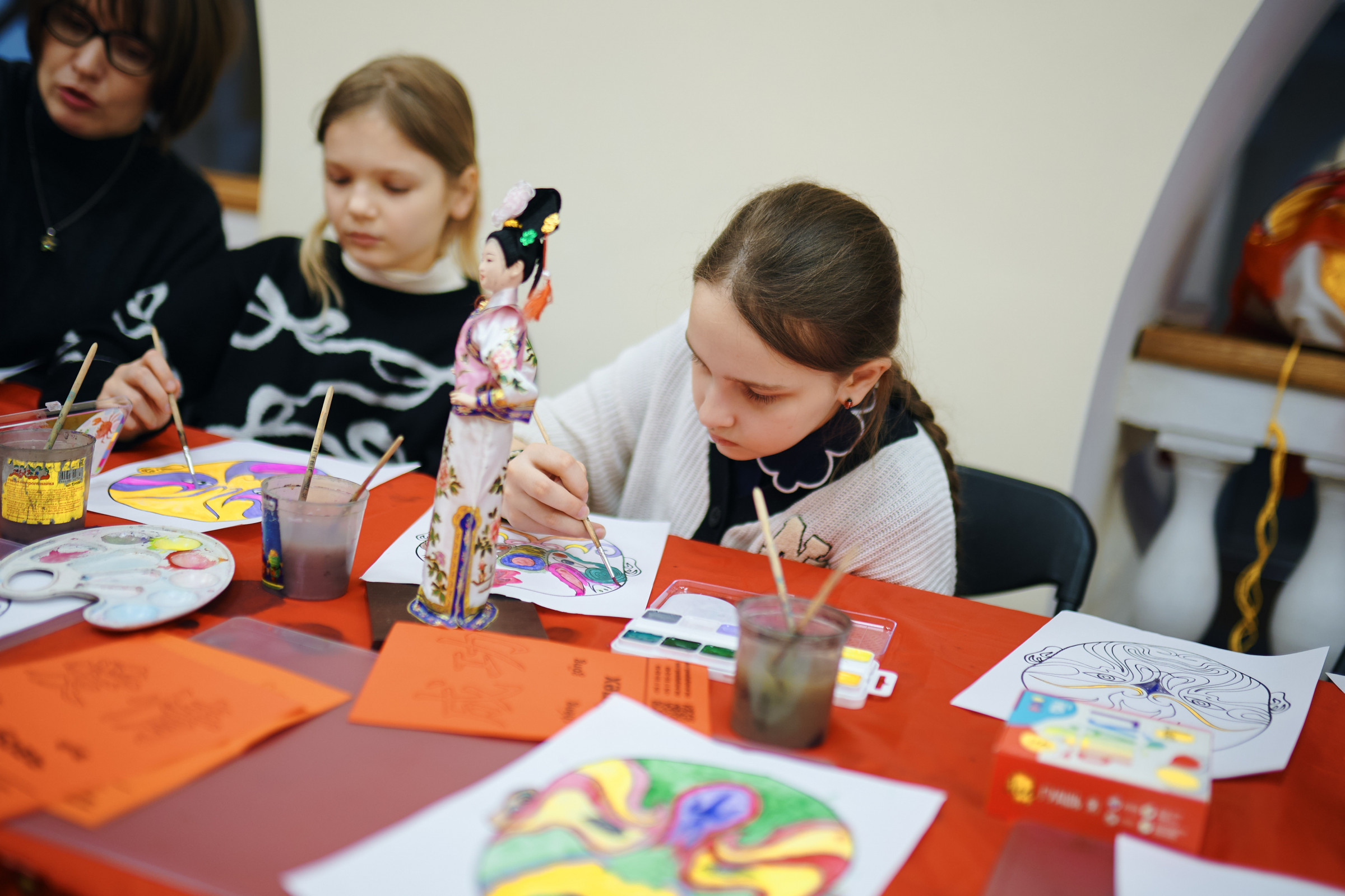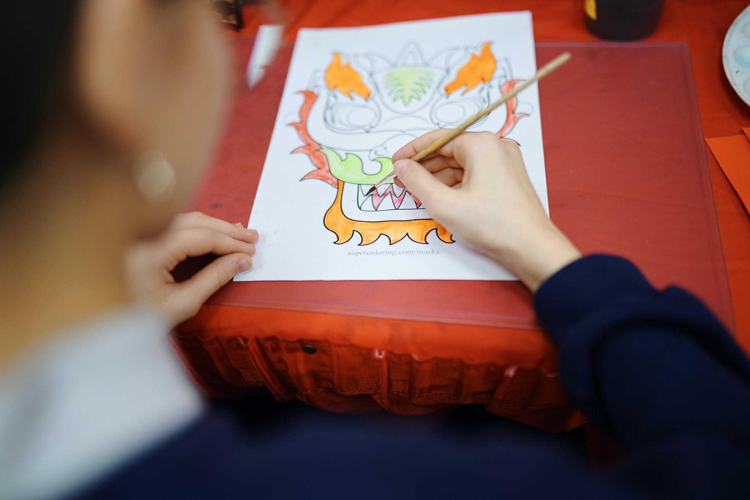 На мастер-классе участникам не только объяснили значение цветов и узоров, но и познакомили с мифологическими образами драконов и персонажами пекинской оперы в традиционной китайской культуре. После этого каждый смог самостоятельно расписать красками специальную заготовку, создавая таким образом собственный элемент китайской театральной культуры.