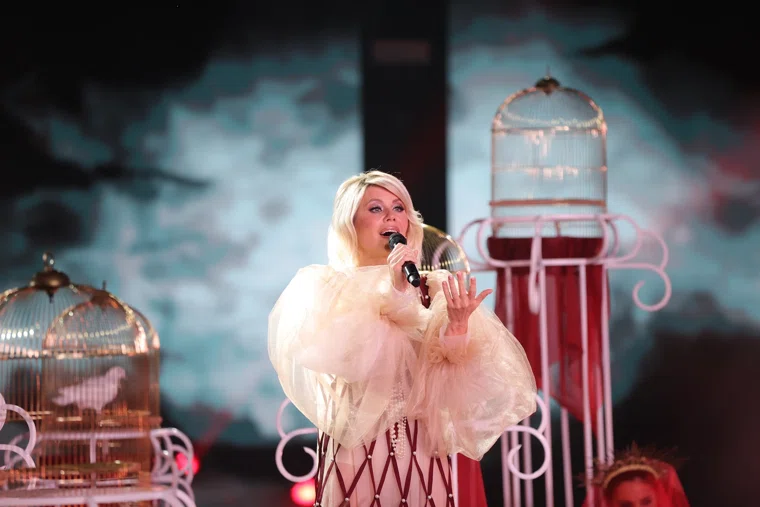 Макаревич исполнила хит Артура Пирожкова, который звучал во всех новогодних эфирах. Постановщики посадили певицу на искрящуюся конструкцию и подвесили к потолку. В куплетах текст было разобрать сложно. Судьи танцевали стоя, хвалили за гротеск и фееричность. Все четверо поставили огни.