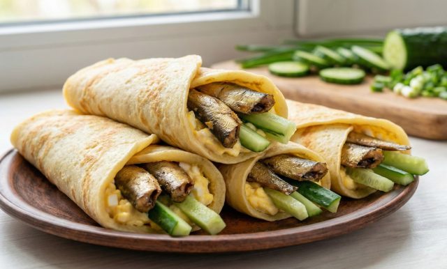 Копченый аромат шпрот моментально вызывает ностальгию, а свежий огурец отвечает за необходимую сочность и хруст. Яичная паста работает как «подушка», смягчая яркий рыбный вкус и делая блюдо более нежным, чем привычный бутерброд на жестком хлебе.