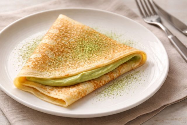 Очень нежный крем с травянистым, чуть терпким оттенком зеленого чая, который идеально балансируется сладостью белого шоколада. Текстура получается шелковистой, тающей, а цвет начинки придает блюду необычный, современный вид.
