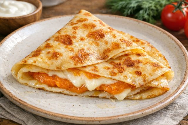 Густая, пряная смесь с большим количеством текстур: мягкая фасоль, хрустящая кукуруза и волокнистое мясо. Острота чили согревает, а свежая кинза добавляет необходимый ароматный акцент, превращая блин в полноценный сытный обед.