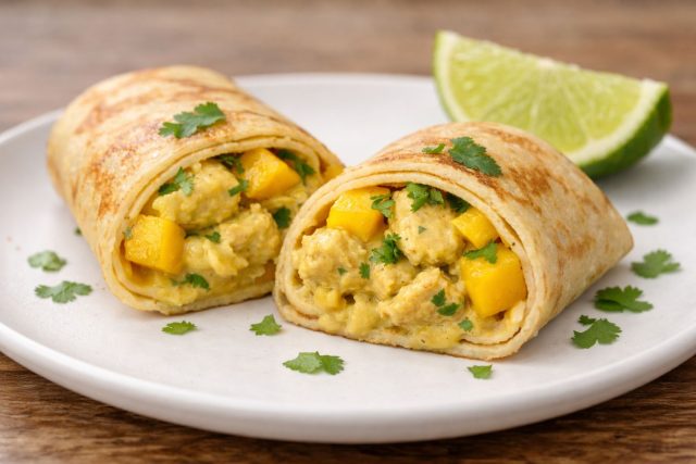 Пряный аромат карри и мягкая острота курицы здесь неожиданно дополняются сочными, сладкими кубиками манго. Фрукт освежает рецепторы и делает суховатое филе грудки удивительно сочным, создавая яркий тропический акцент.