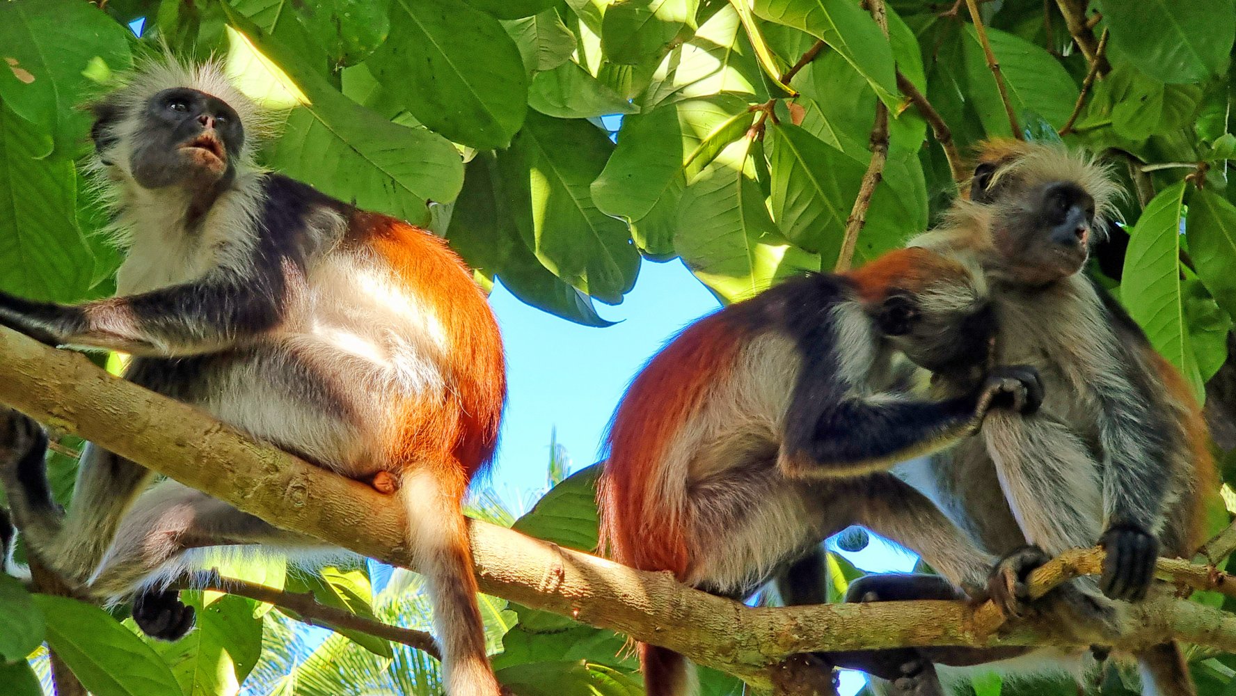 Красные колобусы Кирка в нацпарке Джозани-Чвака-Бэй