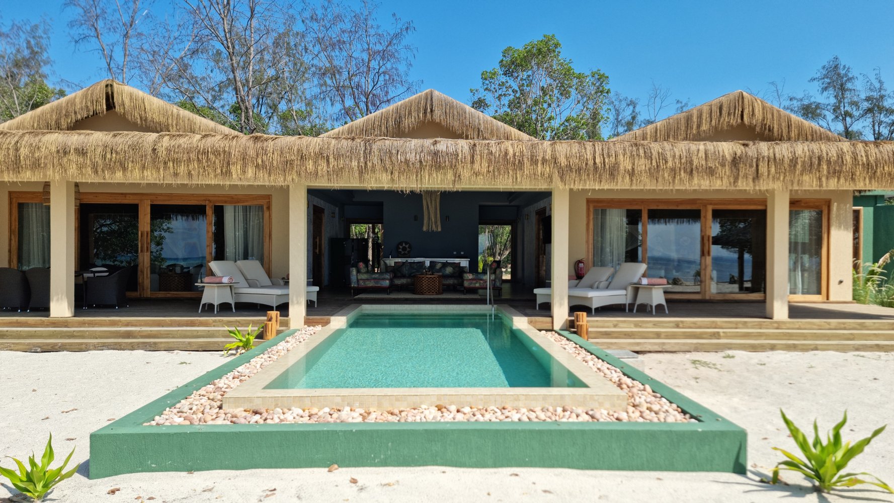 Курорт находится всего в четверти часа езды на скоростном катере от Унгуджи (можно воспользоваться и аэротакси – долететь на вертолёте), но как будто в параллельной реальности. На территории более 30 га – 70 вилл, на африканский лад увенчанных соломенными крышами, с широченными кроватями под балдахином противомоскитной сетки, собственными инфинити-бассейнами и сервисом дворецкого. Шесть из них высятся на сваях прямо над лагуной, совсем как на Мальдивах! Возлегая на гигантской сетке-гамаке на многометровой высоте, ты паришь над Индийским океаном, загипнотизированный дрожащим от жары горизонтом, будто инкрустированным далёкими парусниками-доу.