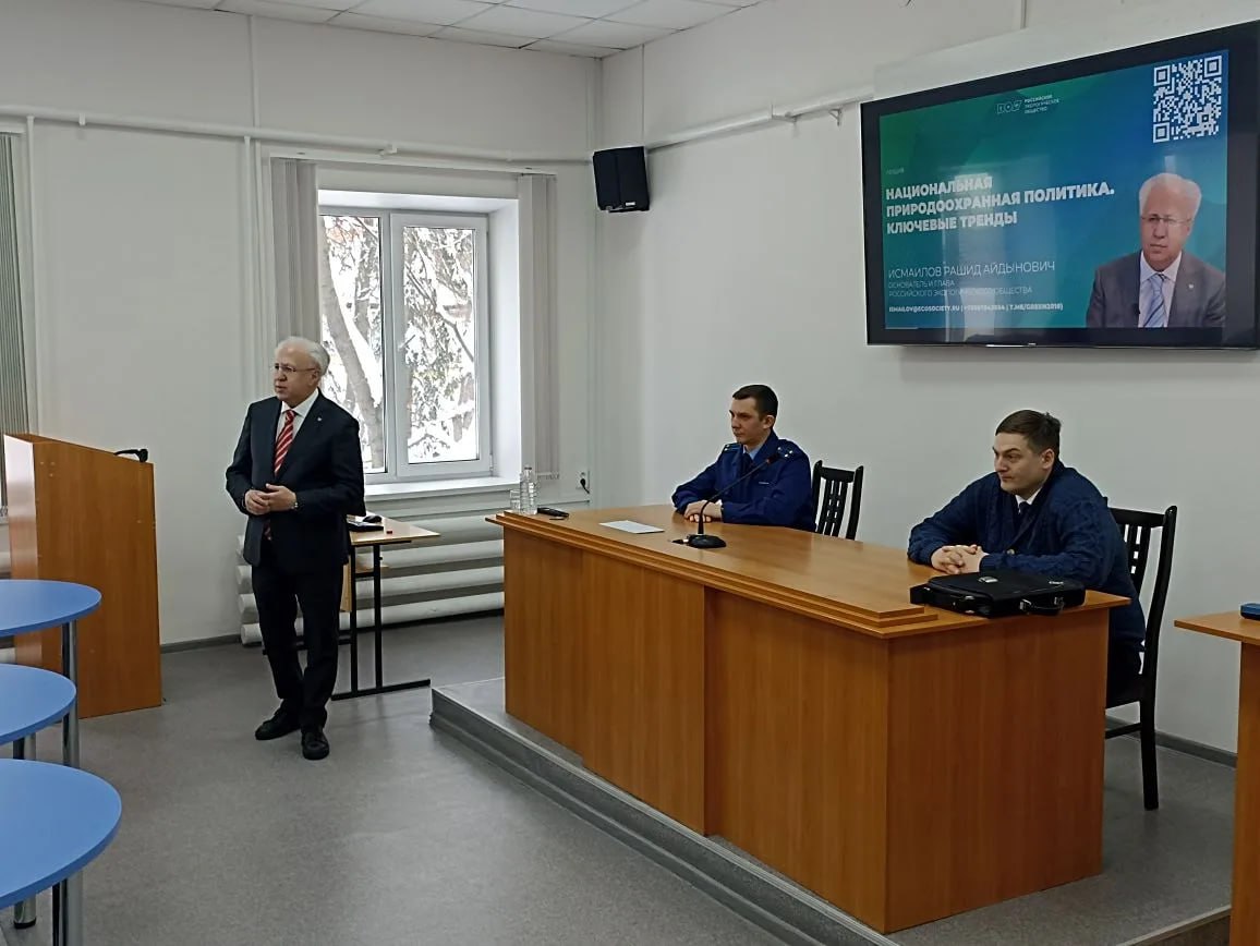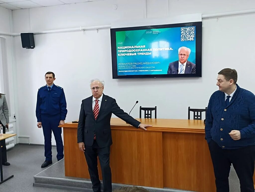 В Волго-Вятском институте Московского государственного юридического университета прошла образовательная лекция, посвящённая вопросам реализации национальной экологической политики и национального проекта «Экологическое благополучие». Спикером выступил Рашид Исмаилов — председатель Российского экологического общества. В мероприятии также приняли участие заместитель министра охраны окружающей среды Руслан Исупов и межрайонный природоохранный прокурор Кировской области Олег Олин.