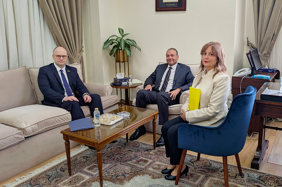 17 февраля 2026 г. Чрезвычайный и Полномочный Посол Республики Беларусь в Арабской Республике Египет, Постоянный представитель Республики Беларусь при Лиге арабских государств (ЛАГ) Евгений Соболевский встретился с заместителем Генерального секретаря ЛАГ по международным политическим делам Халедом Манзлави.